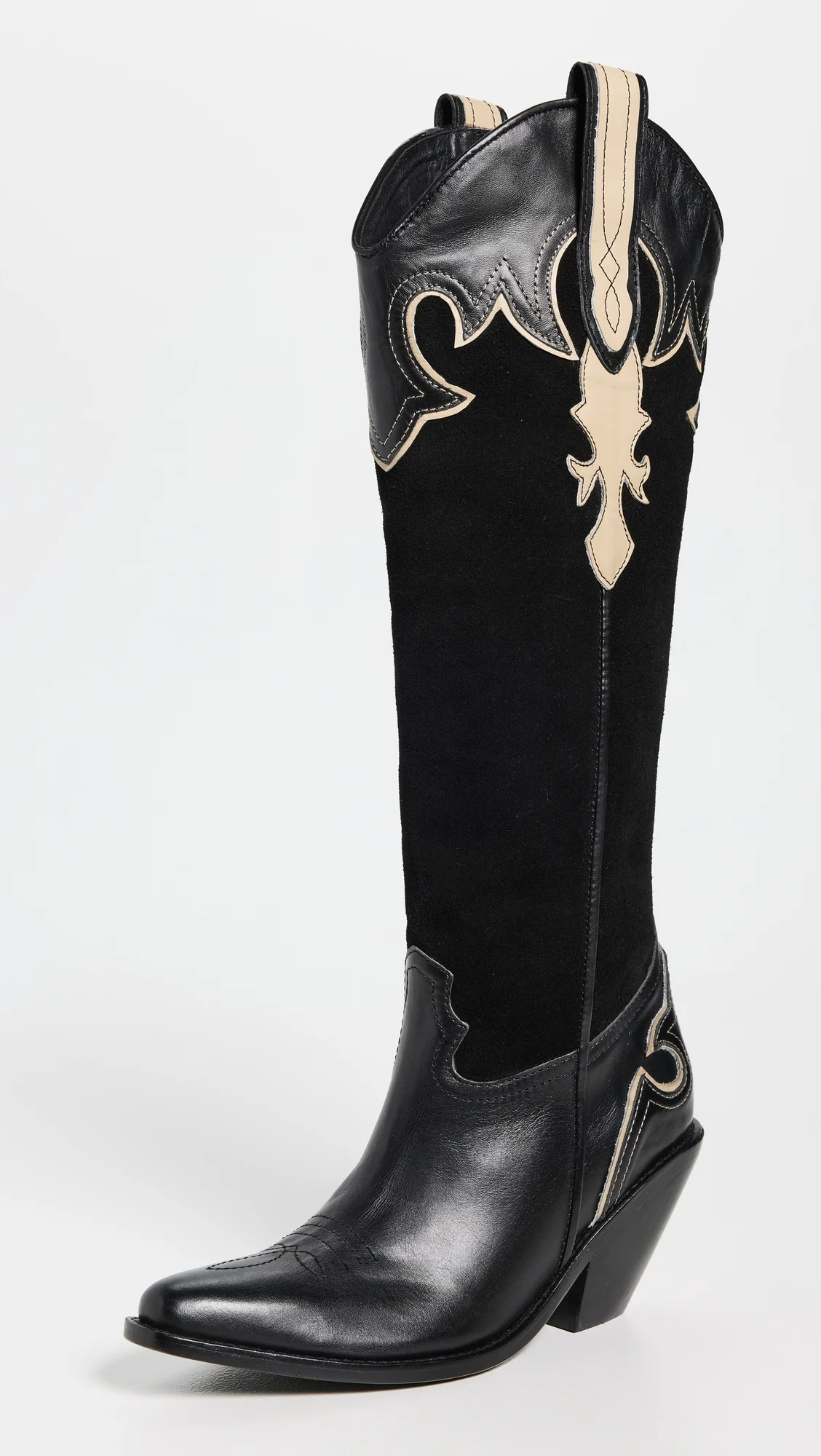 - Upper: Suede - Western-inspired leather appliques - Pull tabs - Lining: Leather - Stacked heel - No closure, pull-on design - Square toe - Leather sole with rubber heel cap - Imported, Colombia - This item cannot be gift-boxed Style #JORTI30544