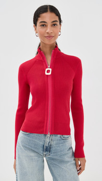 - Fabric: Mid-weight ribbed knit - Mock neck - Two-way zip with acrylic embellishment - Shell: 84% cotton/11% polyamide/4% cashmere/1% elastane - Dry clean - Imported, China - Long sleeves Style #JANDE30697 Size & Fit Model measurements: - Size XS: Rocio (5'11") usually wears size XS - Size XS: Priyanka (5'9") usually wears size XS Measurements from size XS Length: 20in / 51.0cm, from shoulder