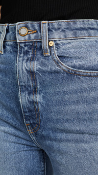 - Fabric: Mid-weight, non-stretch denim - Fading and whiskering - Straight-cut style - Button closure and zip fly - Slant hip and back patch pockets - Shell: 100% cotton - Wash cold - Made in the USA Style #KHAIT30024 Size & Fit Measurements from size 25 Rise: 11.5in / 29cm Inseam: 33in / 84cm Leg opening: 15.75in / 40cm