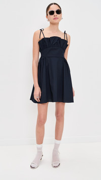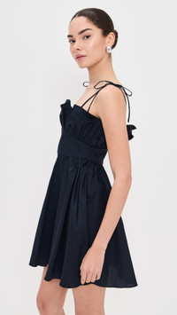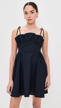 - Fabric: Mid-weight stretch weave - Ruffled bust - Mini length - Square neckline - Adjustable tie shoulder straps - Hook-and-eye and hidden zip at back - On-seam side pockets - Shell: 97% cotton/3% elastane - Unlined - Dry clean - Imported, Colombia Style #KVARG30187