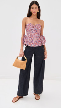 - Fabric: Lightweight, non-stretch twill - Boned seams at back - Twist detail at bodice - Split hem with ruffle trim - Strapless - Hook-and-eye and hidden zip at back - Shell: 100% polyester - Dry clean - Imported, Colombia Style #KVARG30188 Size & Fit Model measurements: Size 0: Brittany (5'9.5") usually wears size 0 Measurements from size 2 Length: 13.5in / 34.0cm, from shoulder