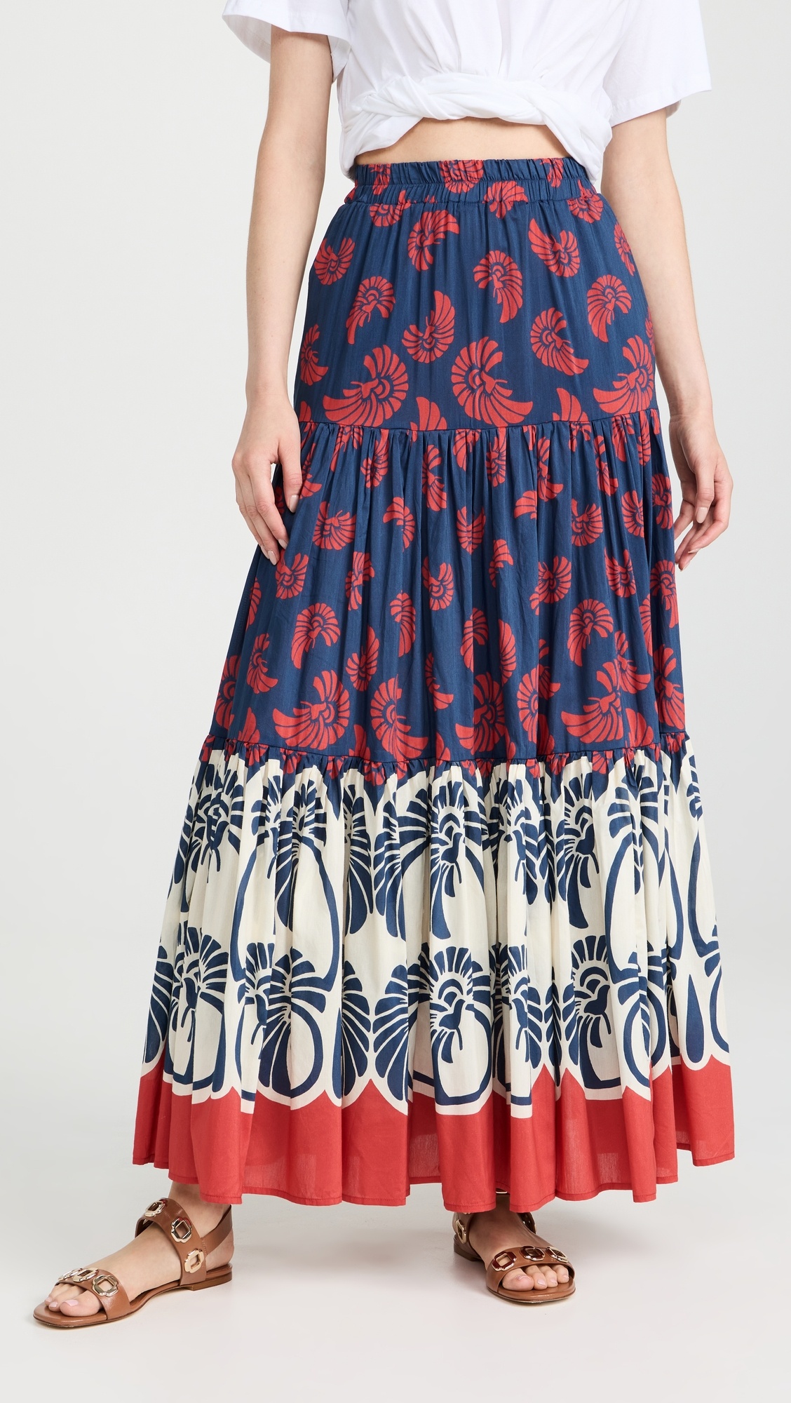 - Fabric: Lightweight, non-stretch voile - Tiered seams and ruffle hem - Floral print - Covered elastic waistband - On-seam hip pockets - Shell: 80% cotton/20% silk - Unlined - Machine wash - Made in Italy Style #LADOU30691 Size & Fit Customers say: Runs small; please size up. Model measurements: Size XS: BB (5'10.5") usually wears size XS-S Measurements from size XS Length: 41.75in / 106.0cm