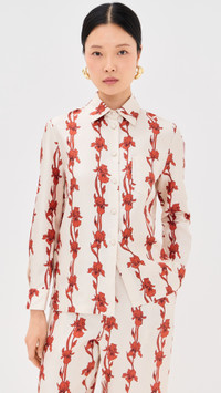 - Fabric: Lightweight, non-stretch silk twill - Floral print - Collared neck - Button placket - Shell: 100% silk - Dry clean - Made in Italy Style #LADOU31042 Size & Fit Model measurements: Size XS: Somin (5'10.5") usually wears size XS-S Measurements from size S Length: 26.5in / 67.0cm, from shoulder
