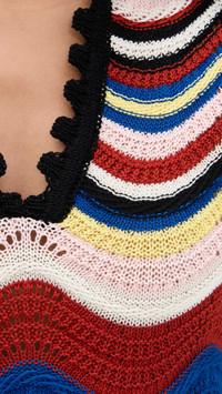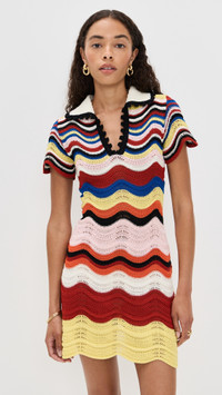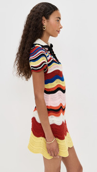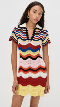 - Fabric: Mid-weight textured knit with stretch - Wavy stripe pattern - Scalloped edges - Mini length - Collared neck - Short sleeves - Pullover design, no closure - Shell: 100% cotton - Unlined - Hand wash - Made in Italy Style #LADOU31088 Size & Fit Customers say: Runs small; please size up. Model measurements: Size XS: Anisa (5'8.5") usually wears size XS Measurements from size S Length: 32in / 81.0cm, from shoulder to front hem