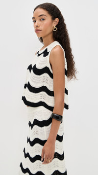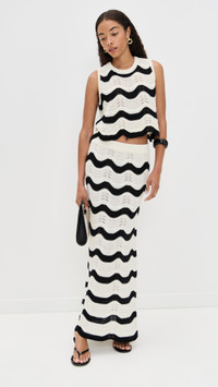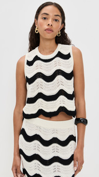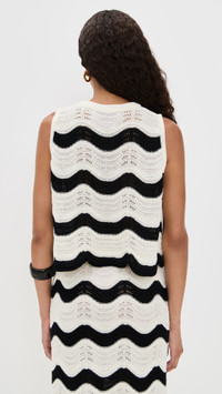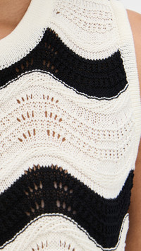 - Fabric: Lightweight crochet with stretch - Chevron pattern - Scalloped hem - Crew neck - Sleeveless - Shell: 100% cotton - Hand wash - Made in Italy Style #LADOU31075 Size & Fit Model measurements: Size S: Anisa (5'8.5") usually wears size XS Measurements from size XS Length: 16.25in / 41.0cm, from shoulder