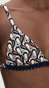 - Abstract print - Crochet trim - Hook-and-eye closure at back - Adjustable straps - Shell: 80% polyamide/20% elastane - Lined - Wash cold - Made in Italy - Bottoms sold separately Style #LADOU31101 Size & Fit Model measurements: Size XS: Cher (5'11") usually wears size XS