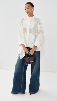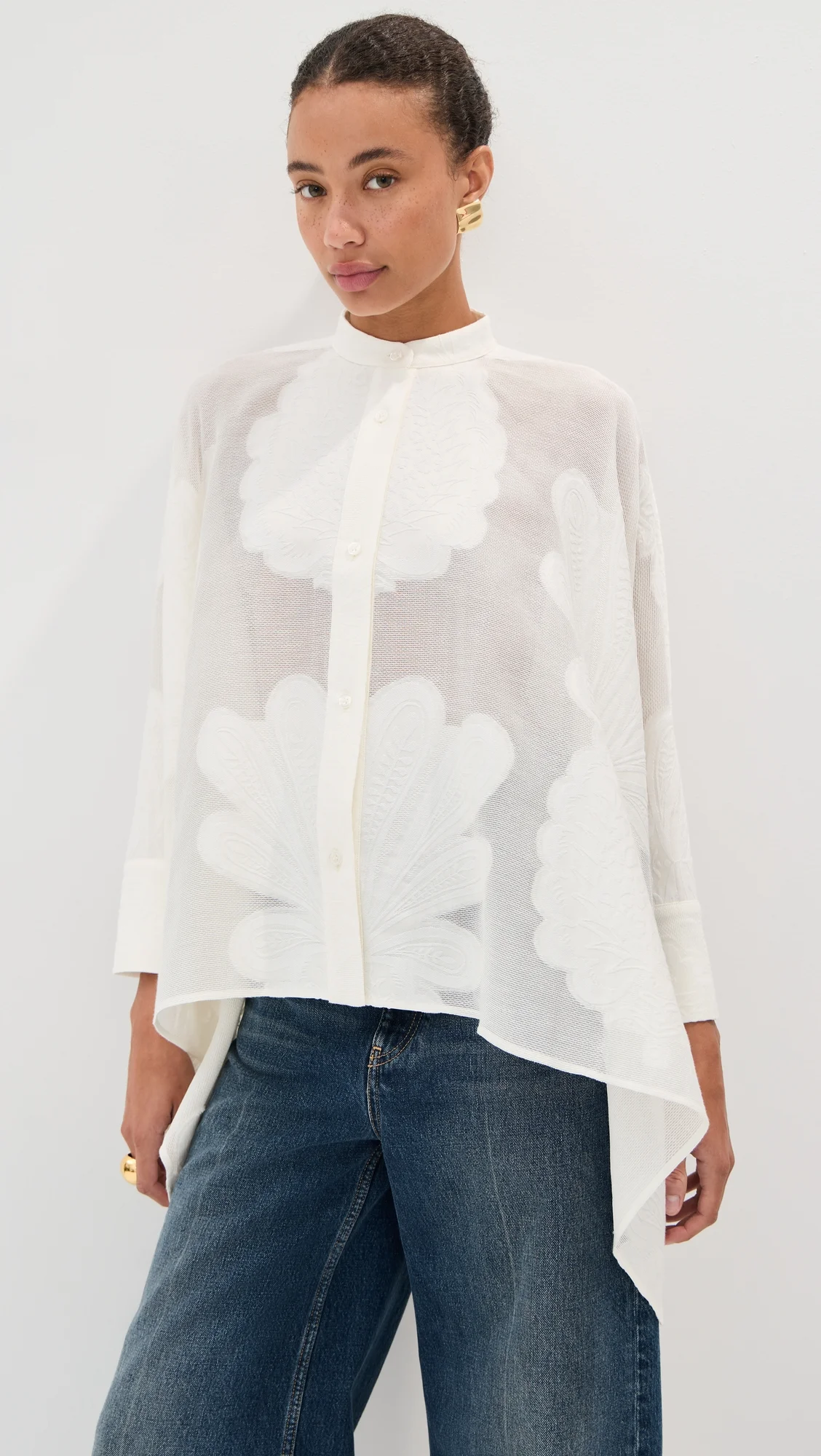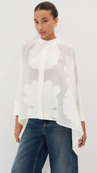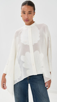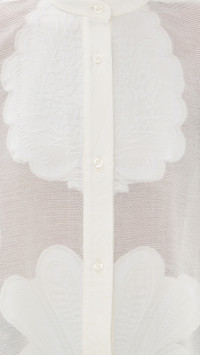 - Fabric: Lightweight, non-stretch jacquard lace - Waterfall style fit - Mock neck - Long sleeves with button cuffs - Button placket - Semi-sheer - Shell: 67% cotton/33% silk - Dry clean - Made in Italy Style #LADOU31108