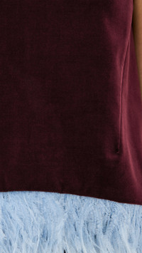- Fabric: Mid-weight, non-stretch velvet - Ostrich feather trim - Crew neck - Sleeveless - Hidden zip at back - Shell: 100% cotton - Trim: 100% feathers - Lined - Dry clean - Made in Italy Style #LADOU31107 Size & Fit Model measurements: Size XS: Mia (5'9.5") usually wears size XS Measurements from size XS Length: 23.5in / 60.0cm, from shoulder