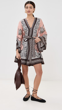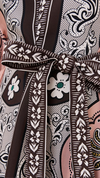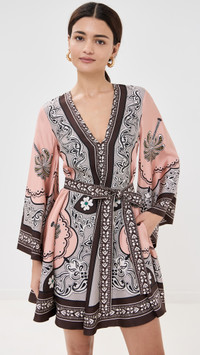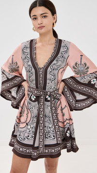 - Fabric: Lightweight, non-stretch silk twill - Palm tree print - V neck - Tie self-belt - On-seam side pockets - Shell: 100% silk - Dry clean - Made in Italy Style #LADOU30964 Size & Fit Model measurements: Size XS: Vie (5'8") usually wears size XXS-XS Measurements from size XS Length: 36.5in / 93.0cm, from shoulder