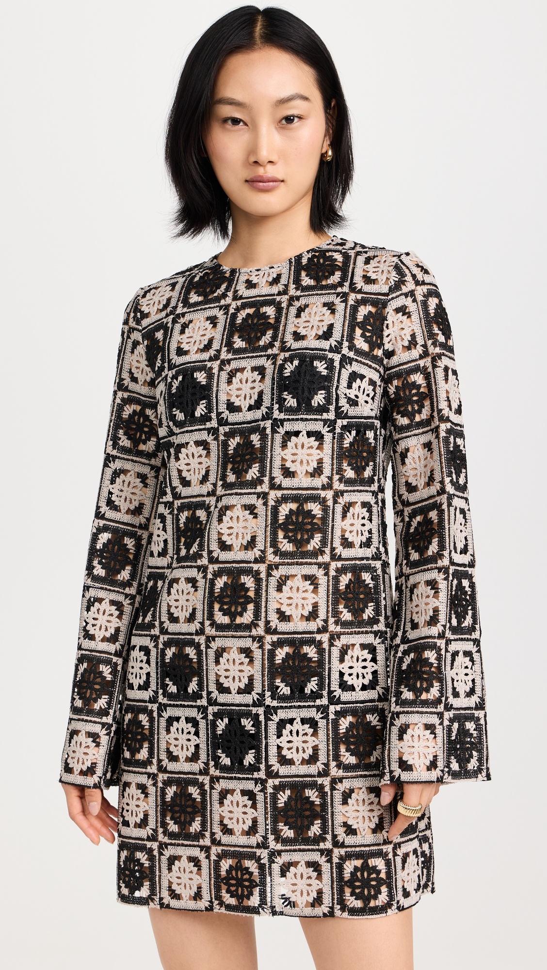 - Fabric: Lightweight crochet - Macrame tile pattern - Round neckline - Hook-and-eye and hidden zip at back - Semi-sheer - Shell: 100% polyester - Unlined - Hand wash - Made in Italy - Long sleeves with bell cuffs Style #LADOU30847 Size & Fit Customers say: Runs small Model measurements: Size XS: Moon (5'8") usually wears size XS Measurements from size XS Length: 32.75in / 83.0cm, from shoulder
