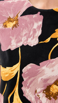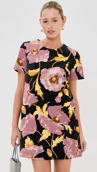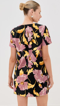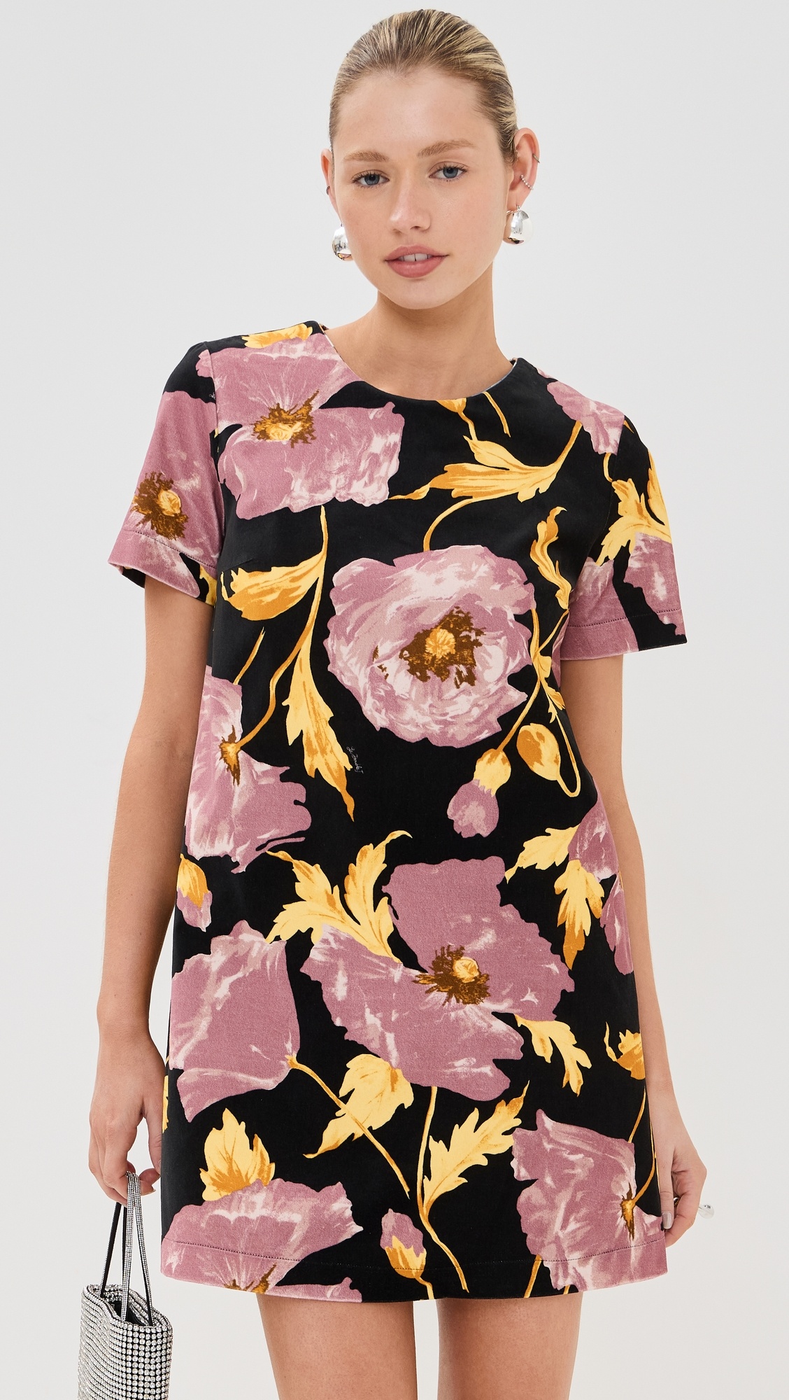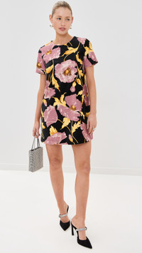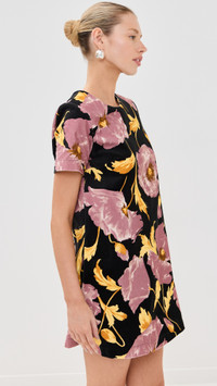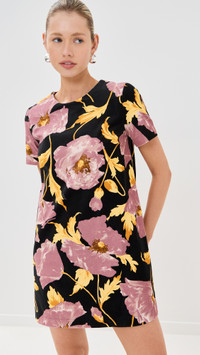 - Fabric: Mid-weight, non-stretch velvet - Floral pattern - Mini length - Crew neck - Short sleeves - Hook-and-eye and hidden zip at back - On-seam side pockets - Shell: 100% cotton - Lined - Wash cold - Made in Italy Style #LADOU30965