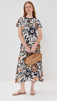 - Fabric: Lightweight stretch jersey - Floral print - Midi length - Crew neck - Short sleeves - Pullover design, no closure - On-seam side pockets - Shell: 100% cotton - Unlined - Wash cold - Made in Italy Style #LADOU31095 Size & Fit Model measurements: Size S: Haley (5'9.5") usually wears size S Measurements from size XS Length: 47.25in / 120.0cm, from shoulder