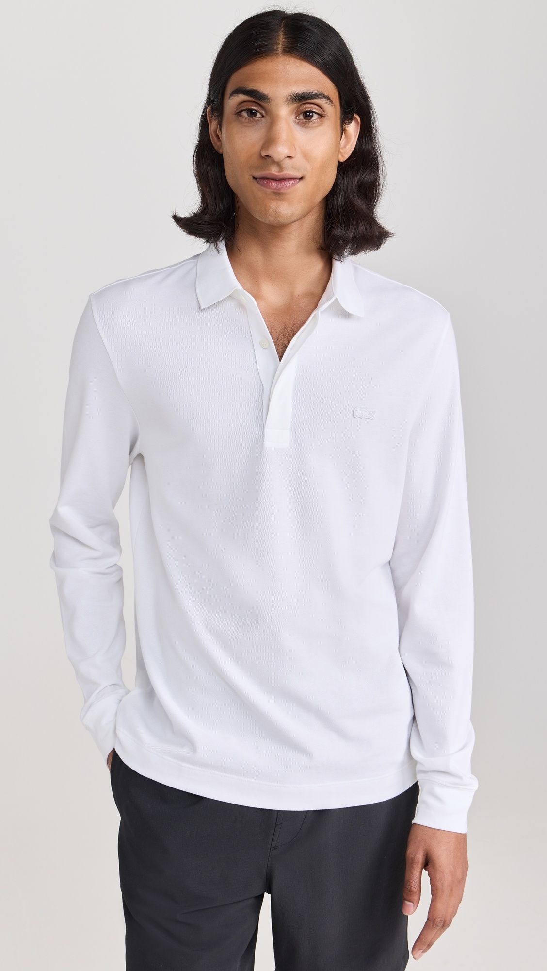 - Fabric: Lightweight, pique knit - Collared neckline and long sleeves - Partial button placket - Tonal logo applique at chest - Shell: 94% cotton/6% elastane - Wash cold - Imported, Peru Style #LCOST30534 Size & Fit Model measurements: Size M: Adarsh (6'1.5") usually wears size M Measurements from size M Length: 28in / 71cm Sleeve: 33in / 84cm Chest: 41in / 104cm