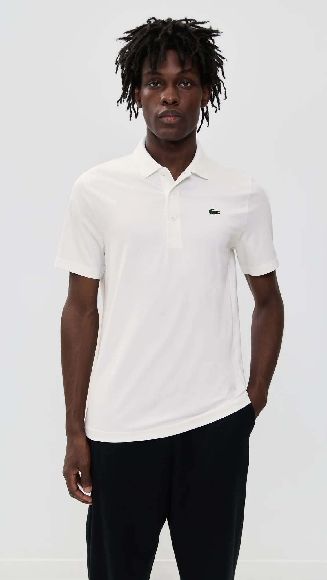 - Fabric: Lightweight, super-stretch activewear jersey - Rubber logo patch at breast - Polo neckline - Short sleeves - Partial button placket - Shell: 88% polyester/12% elastane - Wash cold - Imported, Sri Lanka Style #LCOST30637