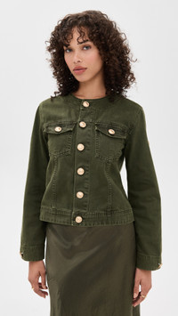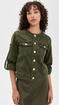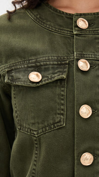 - Fabric: Mid-weight, non-stretch denim - Gold-tone hardware - Crew neck - 3/4 sleeves - Button placket - Flap breast pockets - Shell: 100% cotton - Wash cold - Made in the USA Style #LGENC32287