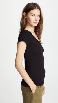 - Fabric: Lightweight jersey - Waist-length style - V neck and short sleeves - Shell: 100% cotton - Hand wash - Made in the USA Style #LGENC30780 Size & Fit Model measurements: Size S: Magdalena (6'0") Measurements from size S Length: 22.75in / 58.0cm, from shoulder