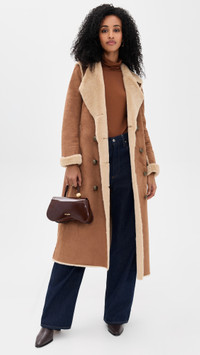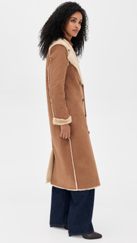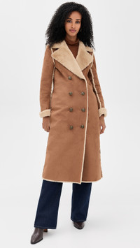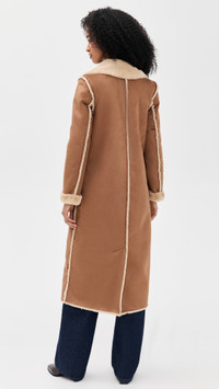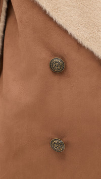 - Fabric: Heavyweight, non-stretch faux suede - Faux shearling lining and trim - Collared neck - Long sleeves - Double-breasted button placket - On-seam side pockets - Shell: 100% polyester - Lined - Leather clean - Imported, Turkey Style #LGENC32244 Size & Fit Model measurements: Size 0: Mical (5'10") usually wears size 0 Measurements from size 0 Length: 45.25in / 115.0cm, from shoulder