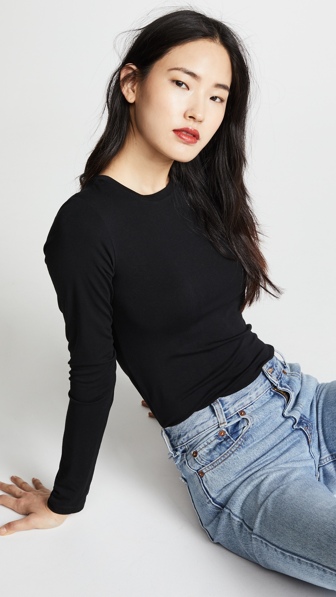 - Fabric: Soft, lightweight jersey - Crew neck and long sleeves - Shell: 96% modal/4% lycra spandex - Hand wash - Made in the USA Style #LGENC30778 Size & Fit Measurements from size S Length: 24.75in / 63.0cm, from shoulder