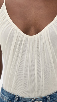 - Fabric: Lightweight, super-stretch mesh - Gathered design - Scoop neck - Adjustable shoulder straps - Thong back and snap gusset - Semi-sheer - Shell: 90% nylon/10% spandex - Trim: 100% polyester - Lined - Dry clean - Imported, China Style #LGENC32368