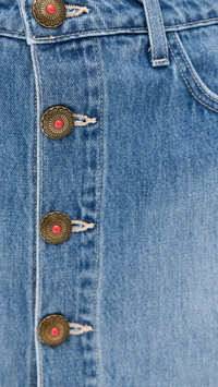 - Fabric: Lightweight, non-stretch denim - Buttons at front with bead embellishment - 5-pocket styling - Shell: 100% cotton - Wash cold - Made in the USA of imported materials Style #LGENC32191