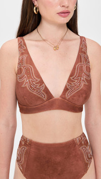 - Western inspired stitching and stud emebllishments - Bikini clasp - Adjustable straps - Lined cups with removable padding - Shell: 80% nylon/20% elastane - Lined - Lining: 87% recycled nylon/13% elastane - Hand wash - Imported, China - Bottoms sold separately Style #LGENC32221