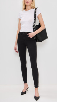 - Fabric: Lightweight, super-stretch denim - Skinny silhouette - Full length - Button closure and zip fly - 5-pocket styling - Shell: 42% cotton/29% rayon/19% tencel lyocell/6% polyester/4% spandex - Wash cold - Made in the USA of imported materials Style #LGENC30964 Size & Fit Measurements from size 25 Rise: 9.5in / 24cm Inseam: 31in / 79cm Leg opening: 9.5in / 24cm