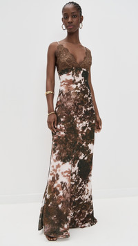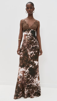 - Fabric: Lightweight, low-stretch silk chiffon - Lace trim at bust - Bias cut for slight stretch - Maxi length - V neck - Adjustable shoulder straps - Hook-and-eye and hidden zip at back - Shell: 100% silk - Lined - Lining: 100% polyester - Dry clean - Imported, China Style #LGENC32209 Size & Fit Features a body-skimming, floor-length silhouette. Silk chiffon fabric has an airy feel. An alternative bra is recommended. Shopbop’s expert stylist says: Runs true to size Model measurements: Size 0: Cher (5'11") usually wears size 0 Measurements from size 0 Length: 63.75in / 162.0cm, from shoulder