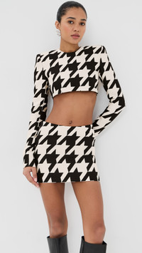 - Fabric: Mid-weight, non-stretch wool weave - Houndstooth pattern - Hook-and-eye and hidden zip at back - Shell: 65% wool/35% polyester - Lined - Lining: 100% polyester - Dry clean - Made in the USA Style #LAQUA30040 Size & Fit Model measurements: Size XS: Eyshila (5'10") usually wears size XS Measurements from size S Length: 12.25in / 31.0cm