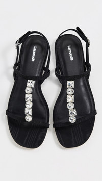 - Upper: Plain weave - Crystal accents - Padded footbed - Lining: Leather - Buckle ankle strap - Open toe - Leather sole with rubber heel cap - Imported, Brazil - This item cannot be gift-boxed Style #LARRO30246