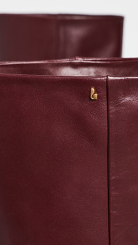 - Upper: Leather - Gold-tone logo charm at top - Lining: Leather - Stacked heel - No closure, pull-on design - Square toe - Leather sole with rubber heel cap - Imported, Brazil - This item cannot be gift-boxed Style #LARRO30290 Size & Fit Heel: 2.75in / 70mm Shaft: 17.75in / 45cm Circumference: 15.75in / 40cm