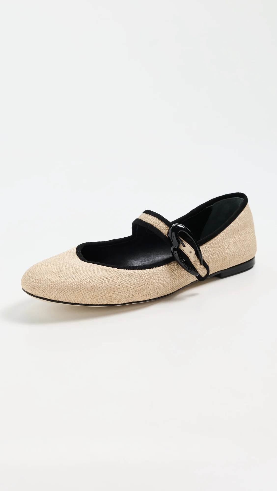 Verona Ballet Flat In Beige Raffia and Black Trimming