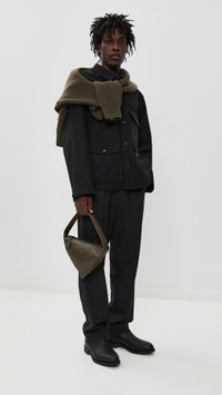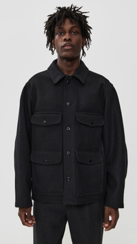 - Fabric: Heavyweight, non-stretch tweed - Brushed finish - Collared neckline - Long sleeves with button cuffs - Button placket - Flap front pockets with snap closures - Shell: 100% wool - Unlined - Dry clean - Imported, Bulgaria Style #LEMAI30446 Size & Fit Model measurements: Size 48: Corey (6'1") usually wears size 48 Measurements from size 48 Length: 28.25in / 72cm Sleeve: 34.75in / 88cm Chest: 48in / 122cm