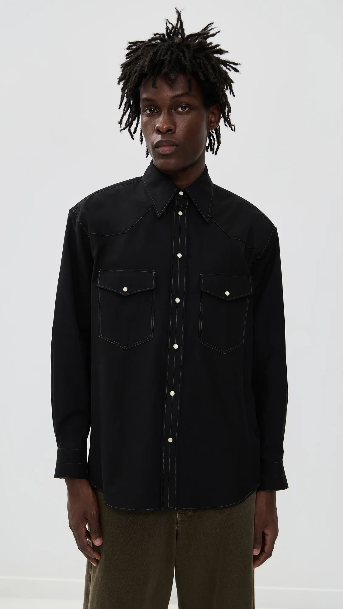 - Fabric: Lightweight, non-stretch poplin - Contrast stitching - Western-style yoke - Collared neckline - Long sleeves with button cuffs - Snap placket - Flap breast pockets with snap closures - Shell: 100% cotton - Wash cold - Imported, Tunisia Style #LEMAI30449