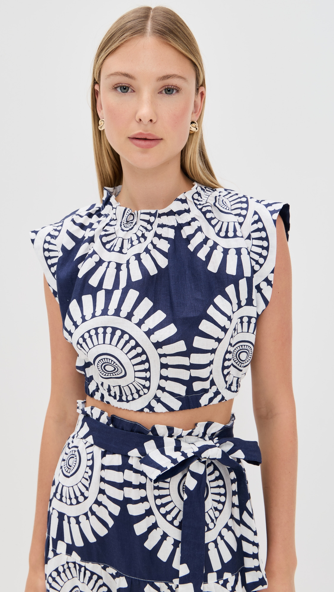 - Fabric: Lightweight, non-stretch linen weave - Mock neck - Short cap sleeves - Covered elastic waistband - Tie keyhole at neckline - Shell: 100% linen - Dry clean - Imported, Kenya Style #LEMLE30451 Size & Fit Customers say: Runs small; please size up. Model measurements: Size XS: Giselle (5'10") usually wears size XS Measurements from size XS Length: 14.5in / 37.0cm, from shoulder