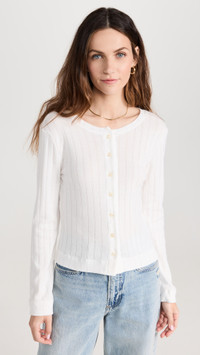 - Fabric: Lightweight pointelle knit - Round neckline and button placket - Shell: 100% cotton - Hand wash - Made in the USA - Long sleeves Style #LIANA30108 Size & Fit Model measurements: Size XS: Zorana (5'8.5") usually wears size XS Measurements from size S Length: 21.75in / 55.0cm, from shoulder