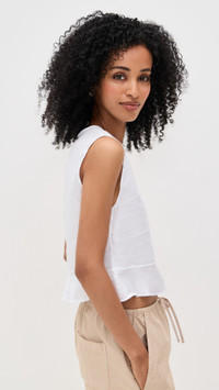 - Fabric: Lightweight, non-stretch weave - Subtle peplum hem - Crew neck - Sleeveless - Button keyhole at back - Shell: 100% cotton - Wash cold - Made in the USA Style #LIANA30405