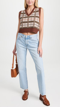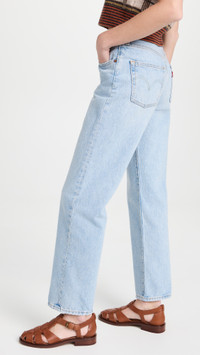 - Fabric: Heavyweight, non-stretch denim - Faded wash and distressed cuffs - Button fly - 5-pocket styling - Shell: 100% cotton - Wash cold - Imported, Macau Style #LEVIV20985 Size & Fit Intended for a mid rise with a straight leg fit. Non-stretch denim will soften and give with wear. Shopbop’s expert stylist says: Runs large; designed for a loose fit. For a higher and closer fit, size down Customers say: Runs large; please size down. Model measurements: - Size 26: Nikayla (5'9.5") - Size 31: Natasha (5'9") usually wears size 30-31 Measurements from size 25 Rise: 10.25in / 26cm Inseam: 30in / 76cm Leg opening: 15.75in / 40cm