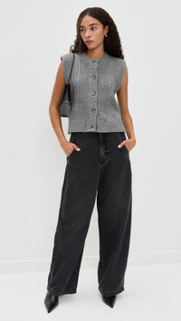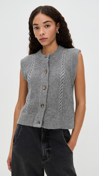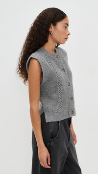 - Fabric: Mid-weight cable knit with stretch - Crew neck - Sleeveless - Button placket - Shell: 45% polyamide/40% wool/15% cotton - Wash cold - Imported, China Style #LEVIV21264