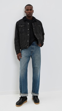 - Fabric: Heavyweight, non-stretch denim - Sherpa lining - Flap breast and slant hip pockets - Collared neckline - Long sleeves with button cuffs - Snap placket - Shell: 100% cotton - Lined - Lining: 100% polyester - Wash cold - Imported, Cambodia Style #LEVIV21296 Size & Fit Model measurements: Size L: Idriss (6'1") usually wears size M-L Measurements from size M Length: 25.5in / 65cm Sleeve: 33.5in / 85cm Chest: 45.75in / 116cm
