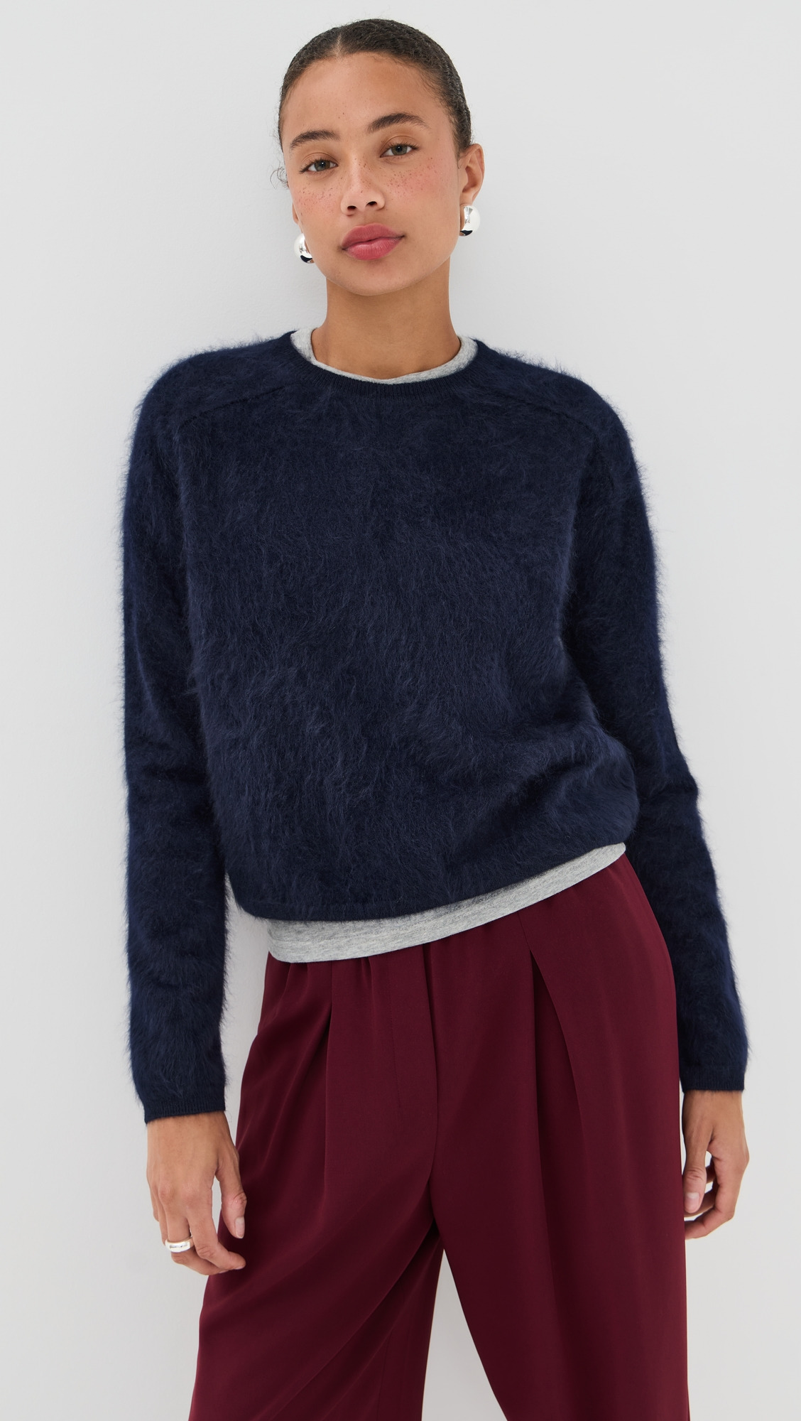 - Fabric: Lightweight fuzzy knit with stretch - Ribbed edges - Crew neck - Long sleeves - Shell: 100% cashmere - Dry clean - Imported, China Style #LISAY30160 Size & Fit Model measurements: Size 0: Drew (5'8") usually wears size 0-1 Measurements from size 1 Length: 20in / 51.0cm, from shoulder