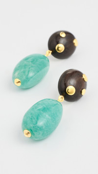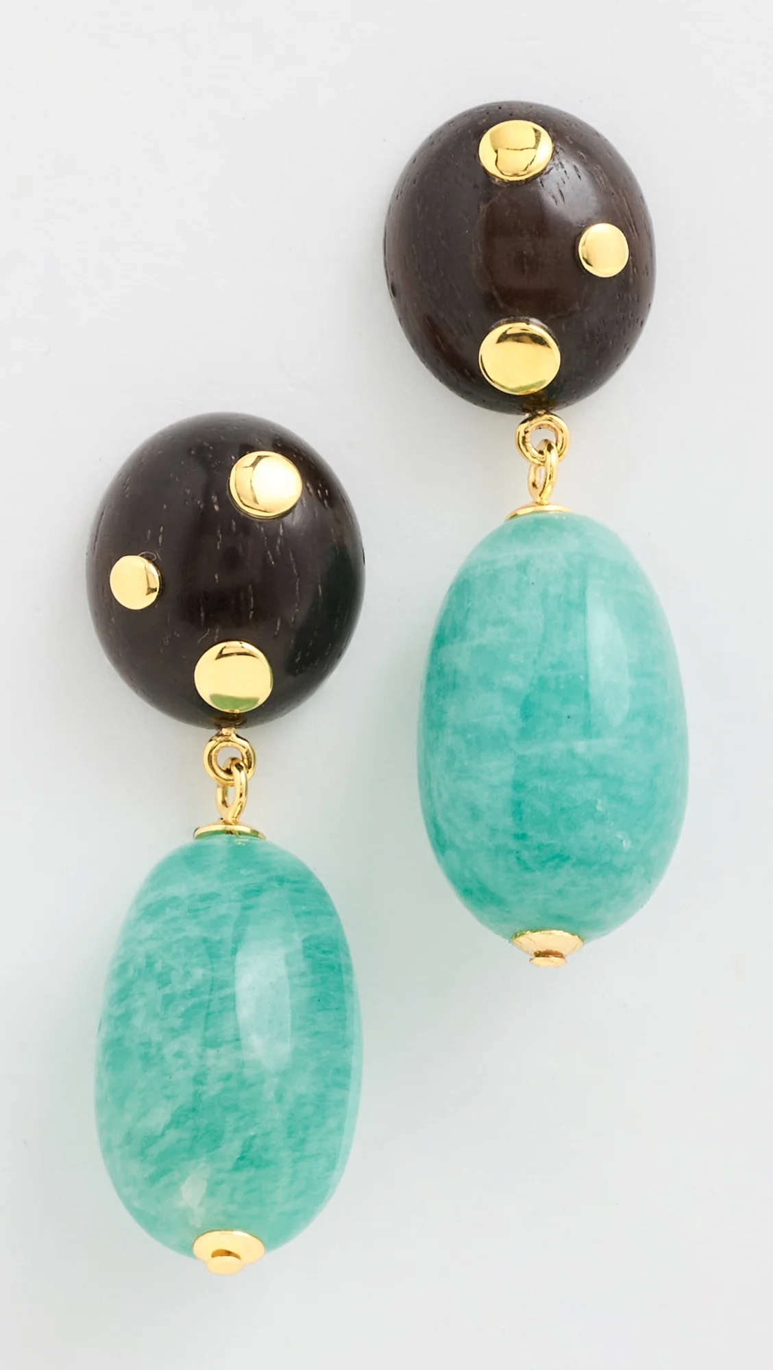 - Wooden beads - Sterling silver post - Oval amazonite - 24k gold plated brass - Post closure - Made in the USA Style #LIZIE41185 Size & Fit Length: 2in / 5.0cm
