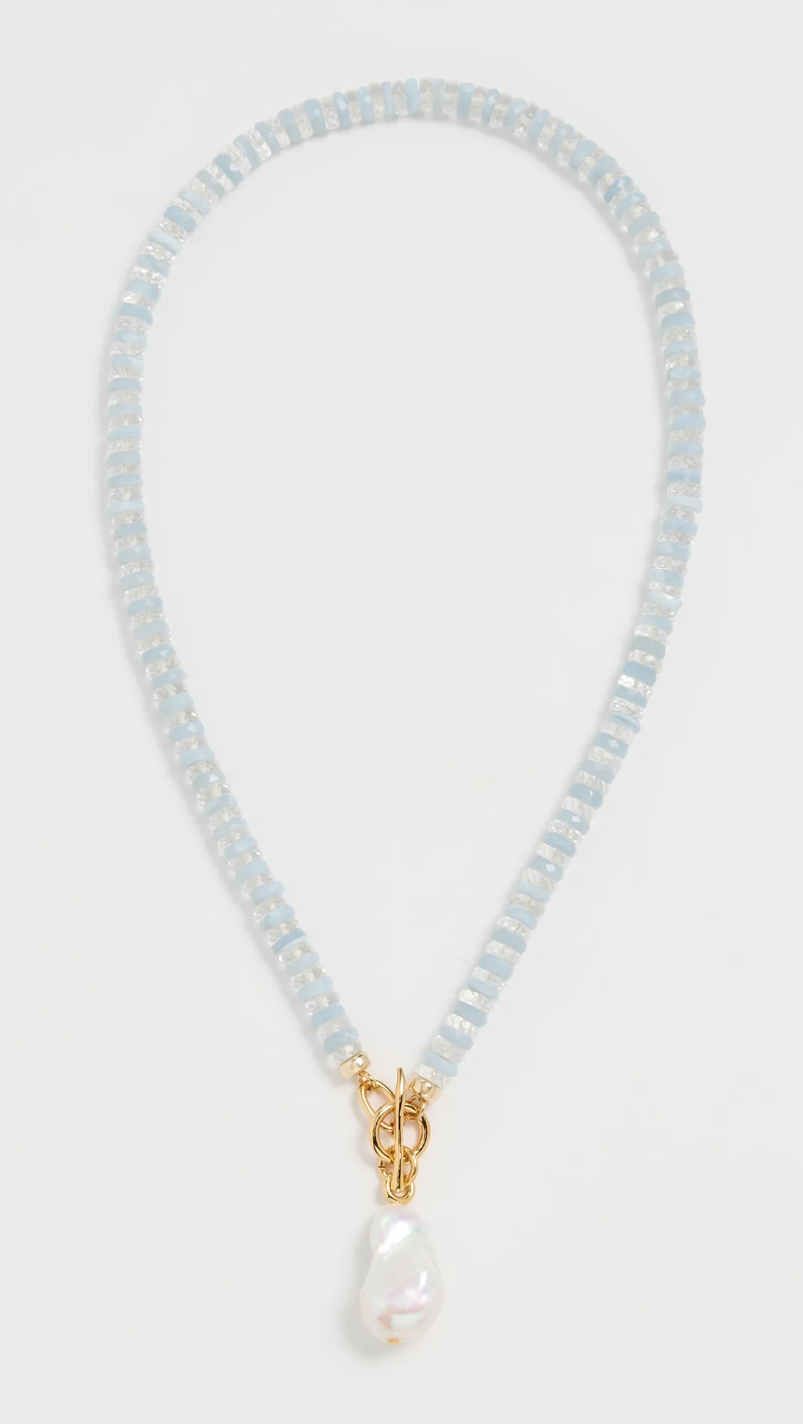 - Crystal accents - Freshwater cultured pearls - Round blue opal (20.0 ct) - Ring and toggle closure - Made in the USA Style #LIZIE41150