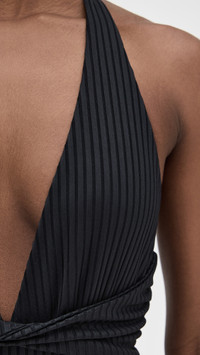 - Ribbed fabric - Twist detail at front - Cheeky coverage - Deep V neck - Ties at back - Shell: 85% polyamide/15% spandex - Lined - Hand wash - Imported, China Style #LSPCE41626