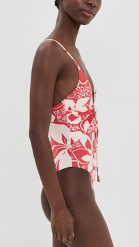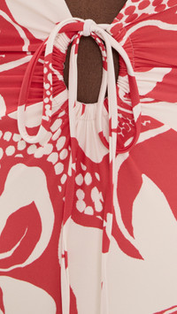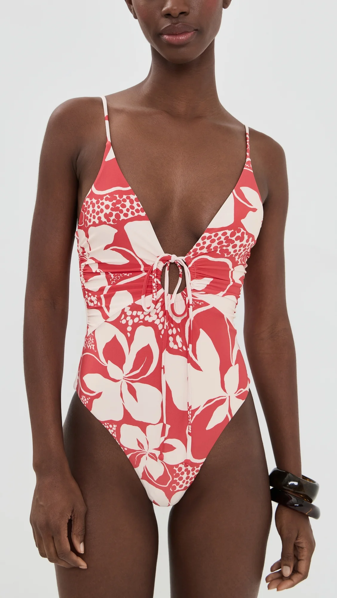 - Floral print - Ruching at keyhole cutout - Moderate coverage - Tie keyhole at neckline - Adjustable straps - Shell: 83% nylon/17% spandex - Lined - Hand wash - Imported, China Style #LSPCE41642