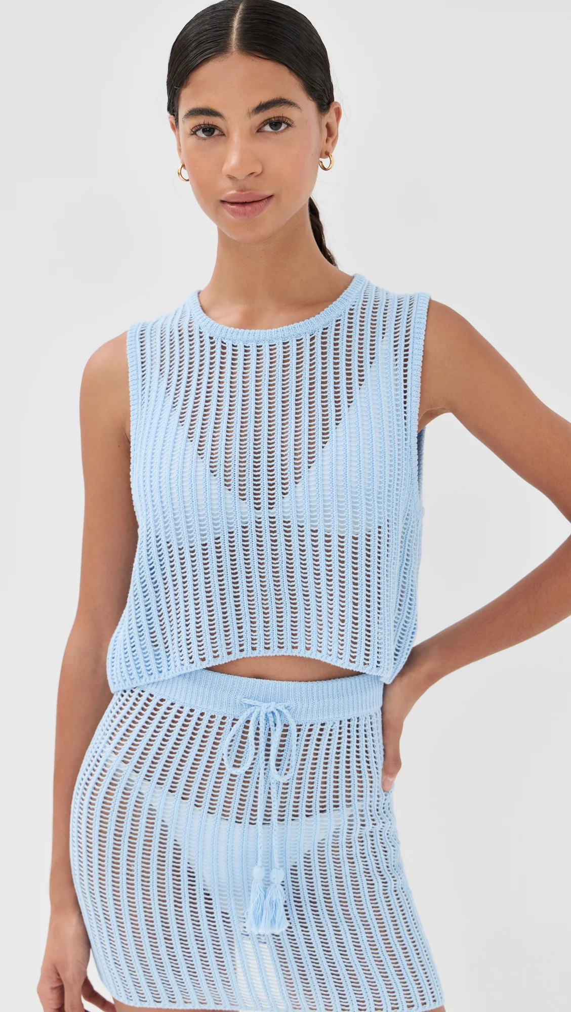- Fabric: Lightweight stretch crochet - Cropped length - Crew neck - Sleeveless - Shell: 100% cotton - Unlined - Hand wash - Imported, China Style #LSPCE41648