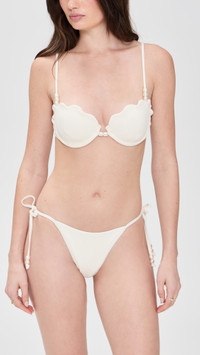 - Imitation pearl embellishments - Scalloped trim - Bikini clasp - Adjustable straps - Lined underwire cups - Shell: 91% nylon/9% spandex - Hand wash - Imported, China - Bottoms sold separately Style #LSPCE41590 Size & Fit Model measurements: Size M: Emily (5'9") usually wears size M