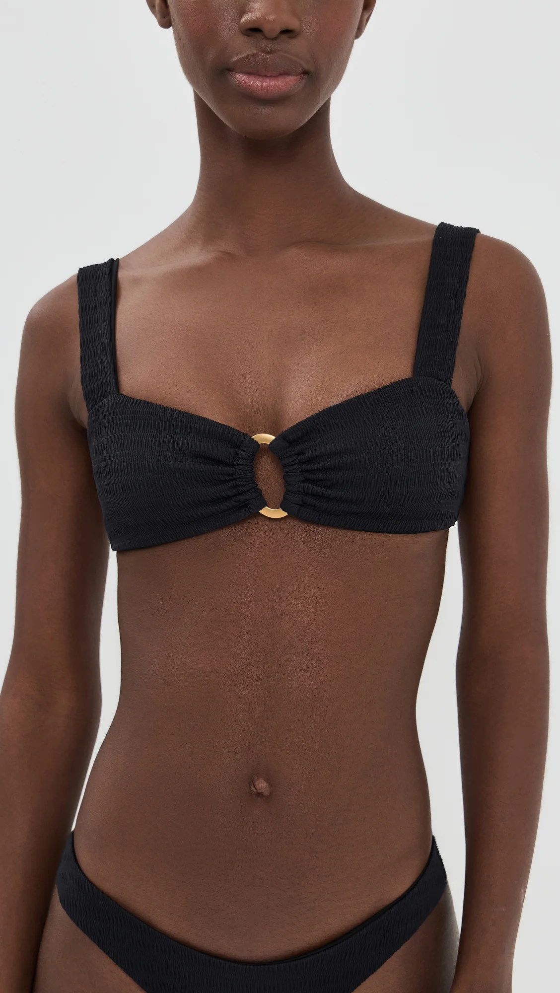 - O-ring detail at front - Lined cups with removable padding - Shell: 99% nylon/1% spandex - Lined - Hand wash - Imported, China - Bottoms sold separately Style #LSPCE41629 Size & Fit Model measurements: Size XS: Cher (5'11") usually wears size XS