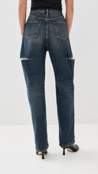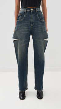 - Fabric: Mid-weight, non-stretch denim - Fading and whiskering - Distressed detailing - Cutout at sides with frayed edges - Button closure and zip fly - 5-pocket styling - Shell: 100% cotton - Wash cold - Made in Italy Style #MARGI41184 Size & Fit Model measurements: Size 38: Margaret (5'11") usually wears size 36 Measurements from size 38 Rise: 13.5in / 34cm Inseam: 31in / 79cm Leg opening: 18in / 46cm