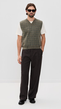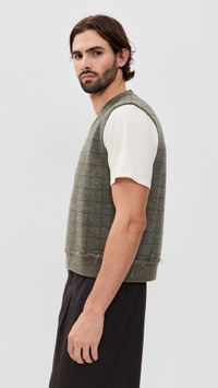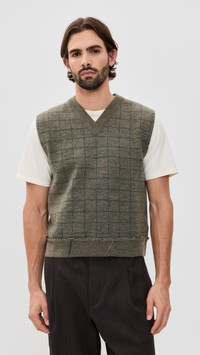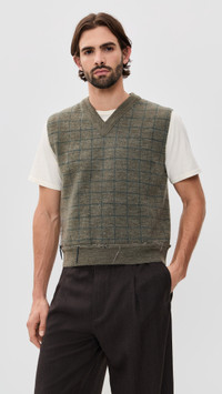 - Fabric: Mid-weight, low-stretch knit - Grid pattern - Raw seams - Distressed embroidery details - V neck - Sleeveless - Shell: 100% wool - Dry clean - Made in Italy Style #MMMAR30338