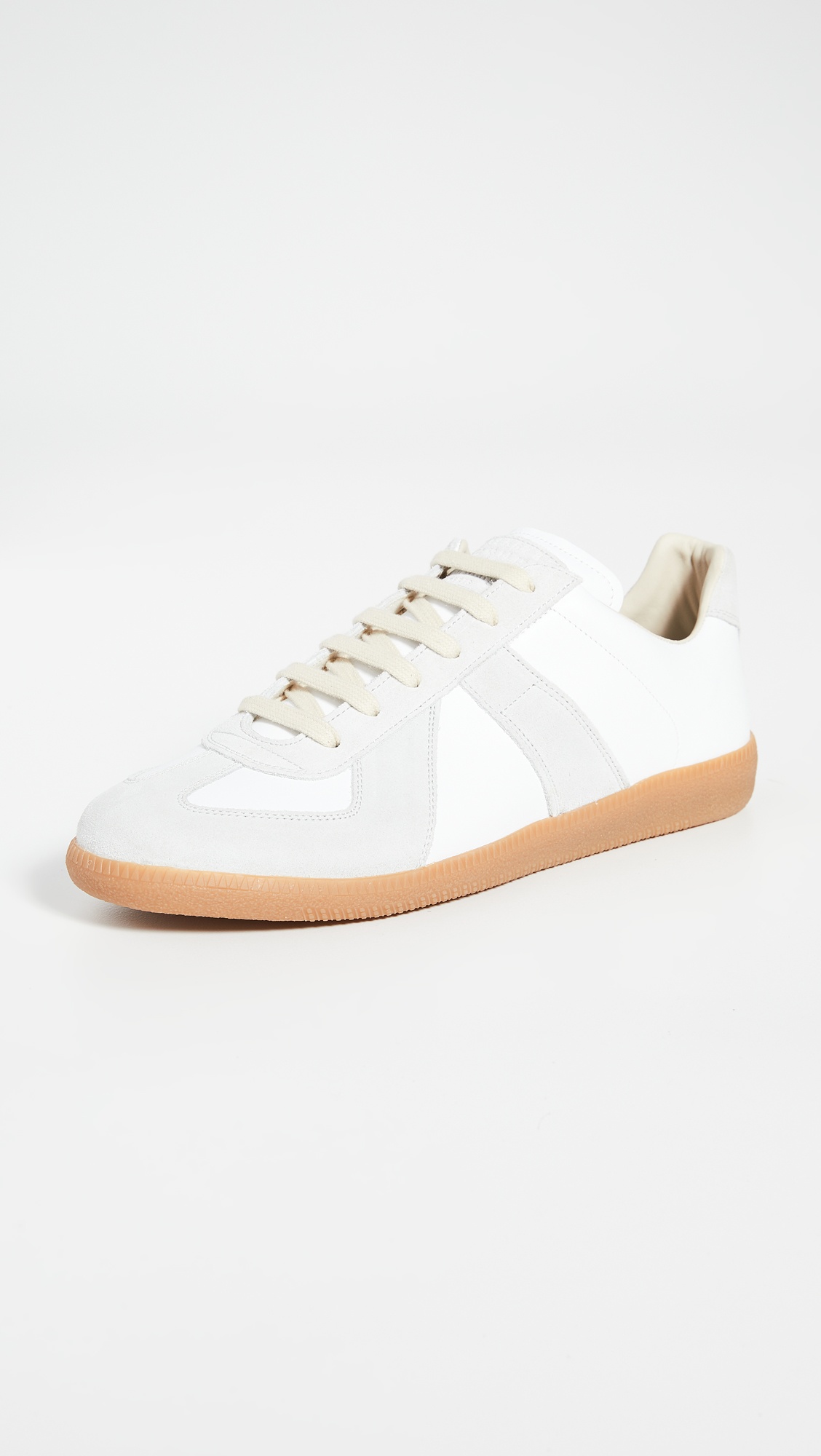 - Leather: Lambskin / calfskin - Contrast suede trim throughout - Logo patch at padded tongue - Lace-up closure - Rounded toe - Rubber sole - Made in Italy - This item cannot be gift-boxed - Low tops Style #MMMAR30035